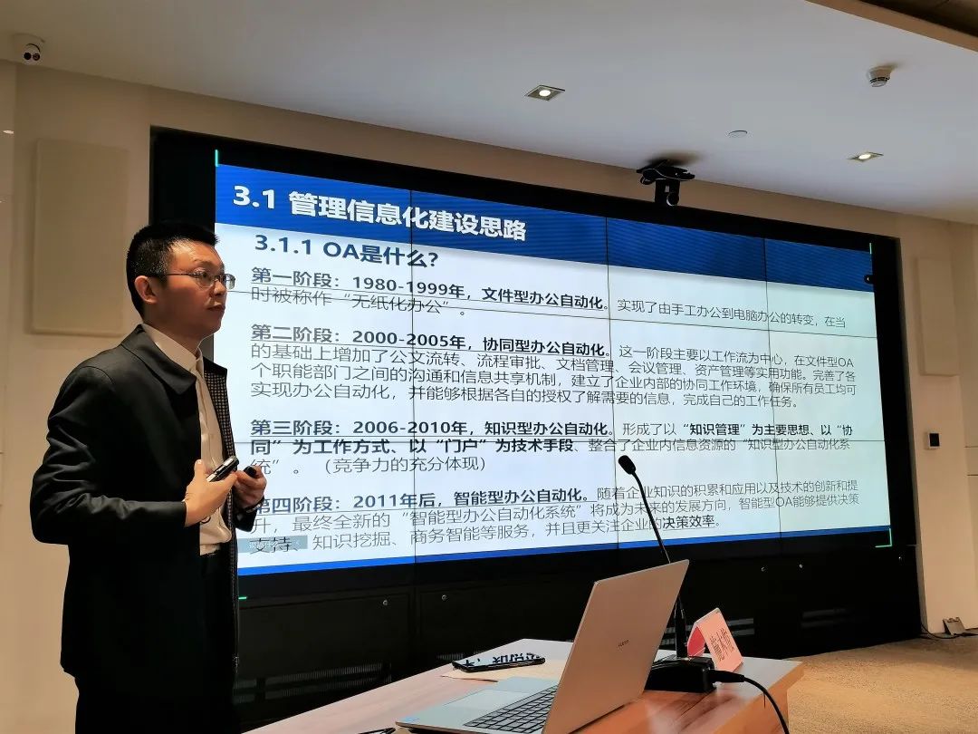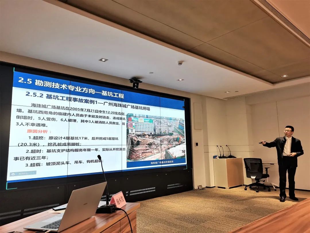 授課進(jìn)入尾聲時,施木俊重點推介了公司在行業(yè)發(fā)展,企業(yè)管理上的優(yōu)勢:在勘測與巖土工程專業(yè)領(lǐng)域,武勘公司能為工程建設(shè)項目的策劃階段提供最優(yōu)解,能精準(zhǔn)把控工程全過程風(fēng)險,實現(xiàn)項目風(fēng)險、經(jīng)濟(jì)與時間相平衡;已積累的分布在武漢各地數(shù)十萬的鉆孔資料和已建設(shè)的數(shù)據(jù)管理平臺,為項目開發(fā)初期高效準(zhǔn)確進(jìn)行成本、工期預(yù)估提供了重要基礎(chǔ)資源;現(xiàn)有的智慧監(jiān)測平臺及自動運(yùn)行的測量機(jī)器人讓項目建設(shè)與運(yùn)行維護(hù)一切盡在掌握;管理信息化更是成為了打破深井,為企業(yè)發(fā)展賦能的重要手段。