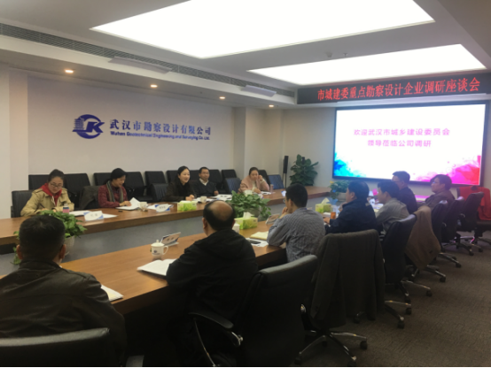 為全面了解武漢市勘察設(shè)計企業(yè)經(jīng)營狀況,切實掌握企業(yè)運行情況,更好的為企業(yè)發(fā)展服務(wù),3月16日下午,市城建委林琨副主任、設(shè)計處徐海清處長、設(shè)計之都發(fā)展中心(審查辦)胡華瑩副主任、海管辦劉婕科長、節(jié)能處明珊科長赴我司進行了考察調(diào)研。市測繪院肖建華院長,公司廖建生董事長、施木俊總經(jīng)理及其他高管層、職能部門負責人參加了座談。