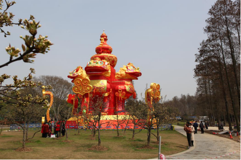 2018年?yáng)|湖燈會(huì)于2月23日至3月31日在武漢市東湖聽(tīng)濤風(fēng)景區(qū)梨園舉辦。自開(kāi)幕以來(lái),燈組“雄獅賀歲”一直備受關(guān)注,多次在各大電視欄目以及報(bào)紙頭版刊發(fā),“雄獅賀歲”燈組構(gòu)圖有創(chuàng)意,以四面雄獅為設(shè)計(jì)主體,周圍環(huán)繞著6柄玉如意,燈組頂端是一個(gè)和平寶尊,寓意世界太平、吉祥如意。