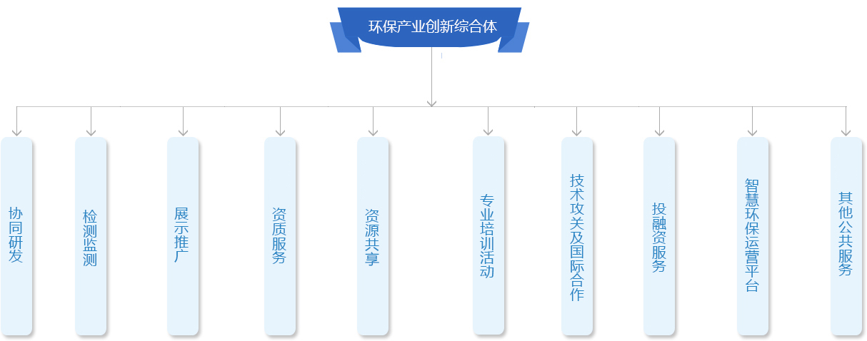 中電環(huán)保發(fā)揮行業(yè)龍頭作用,聯(lián)合“政產(chǎn)學(xué)研金才”綜合資源,打造“環(huán)保產(chǎn)業(yè)創(chuàng)新綜合體”,包括:“二區(qū)、三聯(lián)盟、三中心、七功能”。