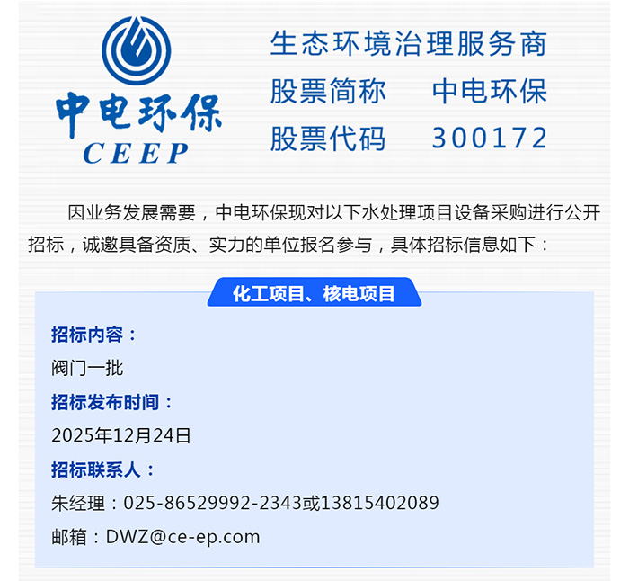 中電環(huán)保股份有限公司是南京市首家環(huán)保上市公司(股票簡稱:中電環(huán)保,股票代碼:300172),南京環(huán)保產(chǎn)業(yè)協(xié)會會長單位,國家級聯(lián)盟理事長單位,是生態(tài)環(huán)境治理服務(wù)商,主營(3+1):水務(wù)、固危廢、煙氣治理及產(chǎn)業(yè)創(chuàng)新平臺,包括:工業(yè)水處理、污水處理及水環(huán)境綜合治理;固危廢土壤、污泥餐廚垃圾處理;煙氣及VOCS治理;智慧環(huán)保;高端裝備等。